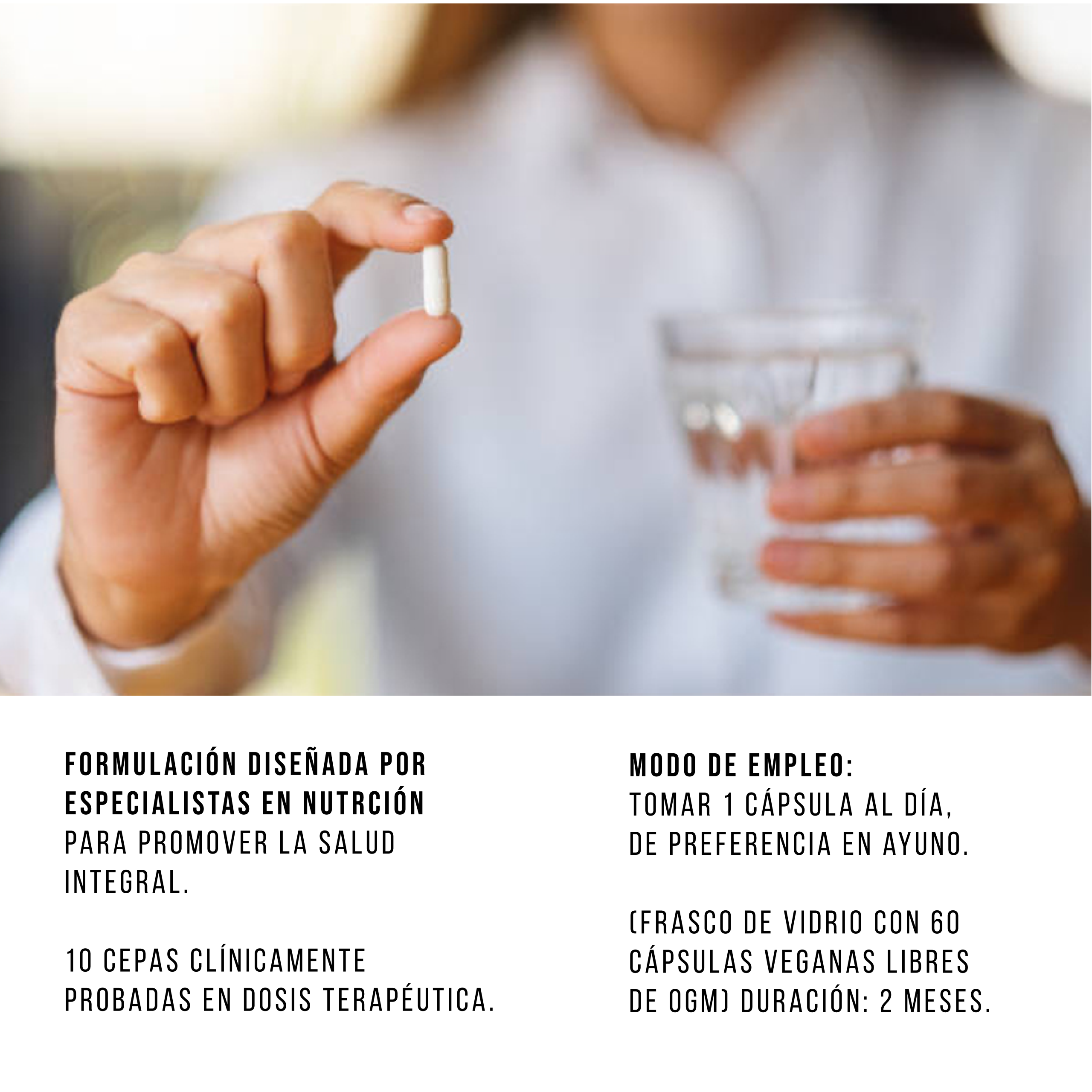 Con 30 billones de probióticos por cápsula de 10 cepas científicamente probadas por su efectividad, ayudan a restaurar y mantener tu salud intestinal. Descubre cómo estos microorganismos beneficiosos pueden transformar tu salud día a día.